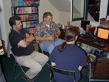 Keith from GameSpy, Cav from Classic Gamer Magazine, and Christopher sittin' around the warmth of an Ultra Pong and reminiscing.