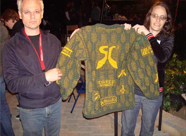 We also have to thank Twin Galaxies' Walter Day and Billy Mitchell, who lent their support to the event with the donation of several full-color, limited-edition SC3 posters and individually-numbered bottles of hot sauce. For those that don't know, Twin Galaxies has been the official scorekeeper for the world of video games and pinball since the 1980s. Walter Day is the founder and chief scorekeeper, and Billy Mitchell is the world champion of Pac-Man and countless other classic arcade games. (He also runs Rickey's World Famous Hot Sauce.) We're thrilled to have the support of these famous folks! The posters and sauces were given out to event attendees or raffled off, although one bottle was opened for the picnic area. Tasty!