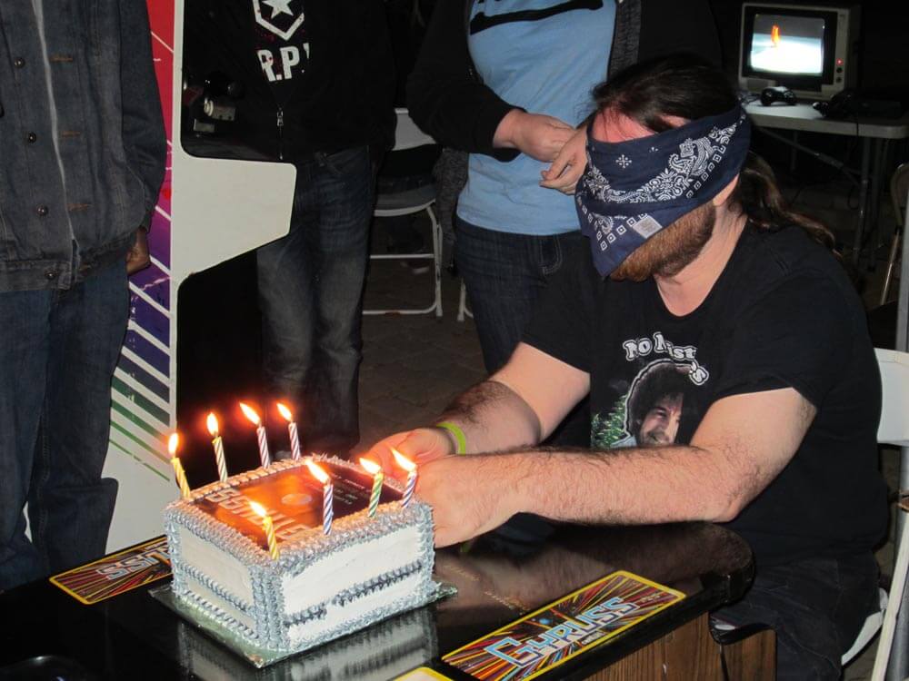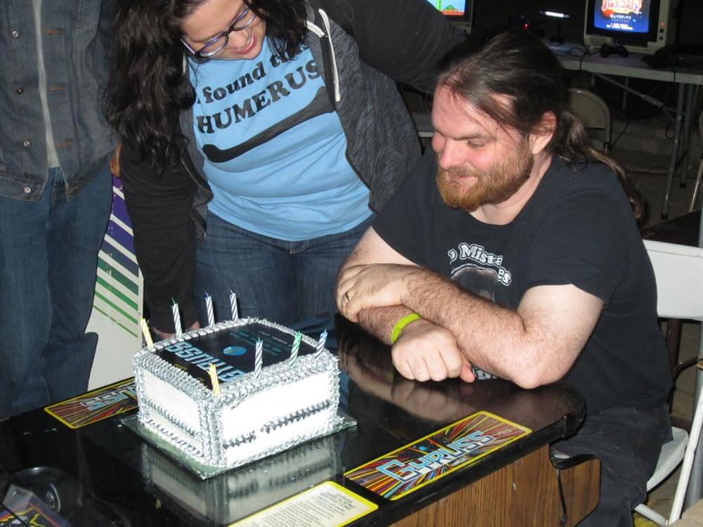 Of course, classic arcade coin-ops were there too. At this point it's hard to remember which machines are making their SC3 debut, but this time around we had Mouse Trap and Pac-Land, which haven't been the most commonly seen. Of special note was the cocktail Gyruss machine, which appeared courtesy of long-time SC3 attendee and Gyruss expert Paul S., who was celebrating his birthday during the event. Unbeknownst to Paul, his wife had conspired with his good friend Webster to surprise him at the event with a Gyruss-themed cake. Paul was obviously touched, as were the rest of us. It was a sweet moment, the kind of thing that you don't ordinarily see outside of SC3 events.