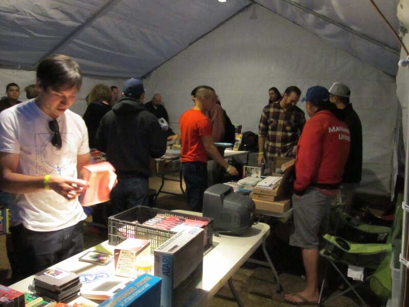 Collectors looking to acquire new cool stuff were not disappointed this time, however. The trade area still had a lot of goodies, and this year's raffle was the largest we've ever had! Geoff, one of SC3's founders, decided to clean out some stuff from storage – and when you've been in the game as long as Geoff has, you know that means some treasures will be unearthed. Of course, he didn't stop there. Geoff knows classic video games, but he also knows classic treats... specifically how to acquire snacks that you haven't seen since the '80s but are still available somewhere in the world. So things like Ecto Coolers, Sharkleberry Finn Kool-Aid, and Quisp cereal littered the raffle table alongside the ColecoVisions, Atari 5200s, anime VHS tapes, and one truly frightening standee of E.T. in a bartender's smock admonishing the world not to drink and drive. William, another SC3 organizer, donated some more items, as did many attendees. The result was a fantastic raffle that was as epic as it was shockingly ALF-free! Thanks for your effort Geoff, hopefully your voice has recovered from yelling out all the winning numbers.